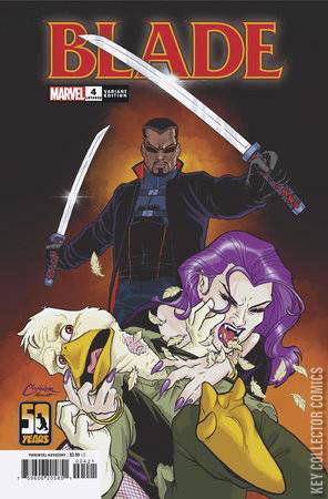 DOCTOR STRANGE JOINS BLADE ON A HIGH-SPEED HEIST! Blade must break into the armored fortress of a weapons collector to steal a sword of unknown power - the key to defeating the Adana. But the fortress isn't just heavily armored. It's mobile. Doctor Strange guest-stars in this action-packed heist that gives new meaning to the term 'bullet train'! Rated T+