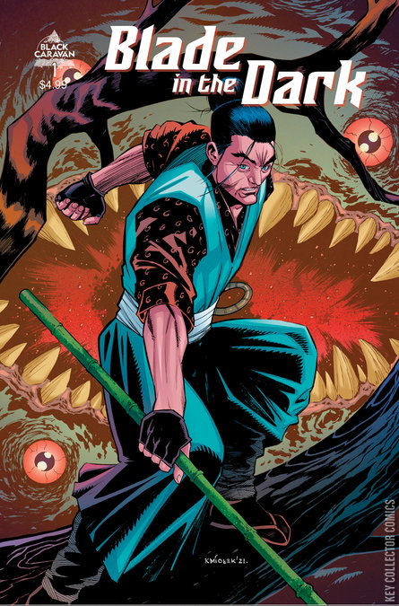 They came, masked, in the dead of night and burned the village to ash. Rook of the Hidden Song, sole survivor to his people, must seek Vengeance. Yet the path ahead is strewn with hidden dangers; monstrous creatures inhabiting the skins of the dead and dying, human soldiers warped by supernatural forces and rogue gods intent on mischief and destruction. Rook must cut a path of blood and reclaim the treasured heart of his ashen village or die in the attempt and take his place alongside his slaughtered kin. Retailer Incentives: Retailers purchasing ten copies of Cover A (1:10) of BLADE IN THE DARK #1 can purchase 1 copy of Cover B by ADAM KMIOLEK. Please reach out to your CS rep with questions about retailer incentives.