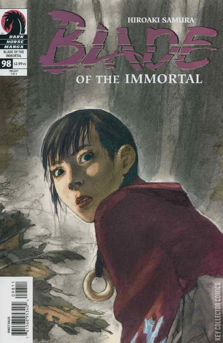 The moonlit forest battle between Manji and Giichi concludes. A bit too confident in his mystical healing powers, Manji has survived several sloppy sword fights and recovered from severe injuries ... but never from a beheading! Giichi's fighting style and unique weapon of choice may be just what's needed to take the near-immortal warrior down. Rin, recently reunited with her beloved Manji, watches the fight from the shadows, while a strange figure lurks in the forest behind her with evil intentions. A cliffhanger ending?? You betcha! Two bloodthirsty fan-favorites clash in another stylish Samurai showdown