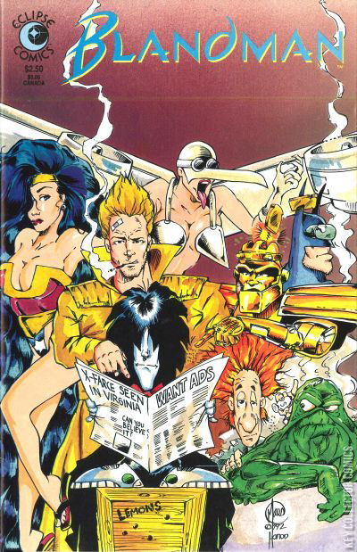 They're all here: The BlandMan, The Gloom Patrol, Shame the Channel-Changing Man, and Hellbwazer...all the famous Dicey Comics characters you love. But something's wrong...their sales are down, down, down. Join the quest as these desperate few strive to change all that, traveling to the ends of the earth in search of new ways to entice readers. Follow Hellbwazer's pathetic pleas for Hollywood sponsorship. Thrill to the Amazing Regis and Krazy Kathie Lee's brilliant plan to rope in the top American talent, who are all camping in the woods trying to find their artist within. Wait in suspense while Shame discovers the ultimate secret behind the infamous Britpack.