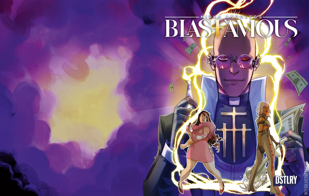 In this final issue, pop icon Clelia faces a crisis after uncovering rival Dorothy's identity. Broken physically and spirtuallyl, she and Father Lev battle against forces of� goodness? As Clelia's world teeters, the righteousness of maintaining the status quo is threatened! Offering an intense exploration of personal and societal values in the glamorous yet ruthless pop industry, Blasfamous comes to a breathtaking, intense climax! The new, exciting series from international superstar Mirka Andolfo (SWEET PAPRIKA, MERCY, UNNATURAL, HARLEY QUINN, PUNCHLINE).