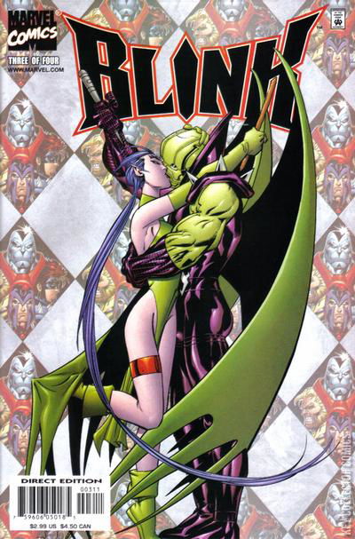 Blink finds herself in the Negative Zone in the thick of a rebellion against Blastaar by Ahmyor. Under pursuit from some of Blastaar's flying goons, Blink leads them into an ambush. Outnumbered Ahmyor and his band of rebels defeat Blastaar's troops and head for one of Blastaar's castles. The rebels storm the castle with Blink at the head of the line and force there way inside. Blink finds a number of young children chain in a darkened prison, which brings back floods of memories of Earth-295 - Illyana Rasputin, Sugar Man and the labour camps. She falls unconscious but is rescued by Ahmyor. Days later, Blink and Ahymor are travelling along the River of Glass where just as Ahymor reveals his love for Blink, Blastaar's troops attack and capture them both. They awaken to find themselves tied to post on display for a raucous crow in what appears to be a gladitorial stadium. Blastaar gloats as he beats Blink and reveals the shocking truth about Ahymor - he is in fact the demon Annihilus.