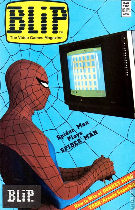 Spider-Man plays SPIDER-MAN the video game! Featuring 6 pages of Spider-man comics with Green Goblin. Plus, tips on how to win at DONKEY KONG and TRON!