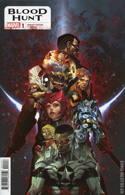 THE BLOODIEST MARVEL EVENT EVER! The skies have gone dark, the sun hiding its face from the carnage to come. The children of the night, the vampires, have risen from the dark and hidden places of the world as one to drown the Marvel Universe in blood. Earth's final night has fallen - can even the heroes of this doomed world stem the tide of blood that is to come? Join the AVENGERS, BLADE, BLOODLINE, SPIDER-MAN, HUNTER'S MOON, TIGRA, DOCTOR STRANGE and CLEA as the dance of death begins in BLOOD HUNT #1! On-Sale in May!