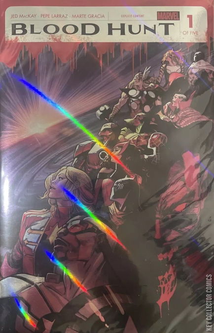 THE BLOODIEST MARVEL EVENT EVER! The skies have gone dark, the sun hiding its face from the carnage to come. The children of the night, the vampires, have risen from the dark and hidden places of the world as one to drown the Marvel Universe in blood. Earth's final night has fallen - can even the heroes of this doomed world stem the tide of blood that is to come? Join the AVENGERS, BLADE, BLOODLINE, SPIDER-MAN, HUNTER'S MOON, TIGRA, DOCTOR STRANGE and CLEA as the dance of death begins in BLOOD HUNT #1! On-Sale in May! Rated T+