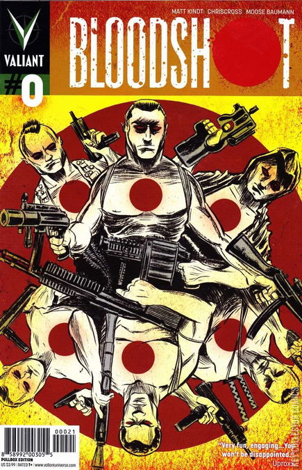 Pullbox edition different color at valiant logo and a barcode Discover the declassified secret history of Project Rising Spirits Bloodshot program and its most successful soldier as told by superstar creator Matt Kindt (Mind MGMT, Justice League of America) and fan favorite artist ChrisCross (Superman/Batman)! From the darkest days of World War II and Korea, and through the hell of Vietnam and Afghanistan, Bloodshots origin leaves a bloody trail of discarded lives and forgotten families. But which memories are real? Which families? Which children? Is Bloodshot many men&or no man at all? Is he simply a soulless killing machine or something more? Who is responsible? And why have they engineered the most dangerous weapon ever conceived by man? This issue holds the answers&but also reveals that we may have been asking the wrong questions all along&
