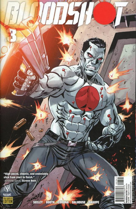 Break out the popcorn before Bloodshot hits the big screen and witness the supersoldier unleashed! New York Times bestselling writer Tim Seeley (Grayson) and industry icon Brett Booth (Titans) let loose a can't-miss chapter of their pulse-pounding new series! The origin issue of Eidolon, Bloodshot's greatest nemesis in the making!