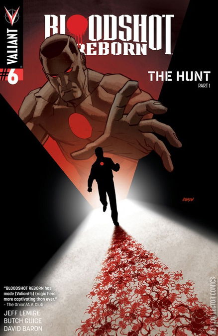 The Hunt - Part 1 ALL-NEW ARC! JUMP ON BOARD HERE! Bloodshot is on the hunt. Determined to stop the violent reign of terror that plagues Colorado, Bloodshot journeys across the Rocky Mountains to destroy the remaining nanites that have caused mass murderers to spring up across the state. But will the drugs, booze, and insane visions rattling around his head put an end to his journey before it begins? Start reading here as New York Times best-selling writer Jeff Lemire (Descender) and modern master Butch Guice (Captain America: The Winter Soldier) begin the second staggering story arc of the chart-topping new series that Entertainment Weekly calls “a subversive new take on Valiant’s resident unkillable killing machine.”