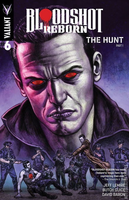 The Hunt - Part 1 ALL-NEW ARC! JUMP ON BOARD HERE! Bloodshot is on the hunt. Determined to stop the violent reign of terror that plagues Colorado, Bloodshot journeys across the Rocky Mountains to destroy the remaining nanites that have caused mass murderers to spring up across the state. But will the drugs, booze, and insane visions rattling around his head put an end to his journey before it begins? Start reading here as New York Times best-selling writer Jeff Lemire (Descender) and modern master Butch Guice (Captain America: The Winter Soldier) begin the second staggering story arc of the chart-topping new series that Entertainment Weekly calls “a subversive new take on Valiant’s resident unkillable killing machine.”