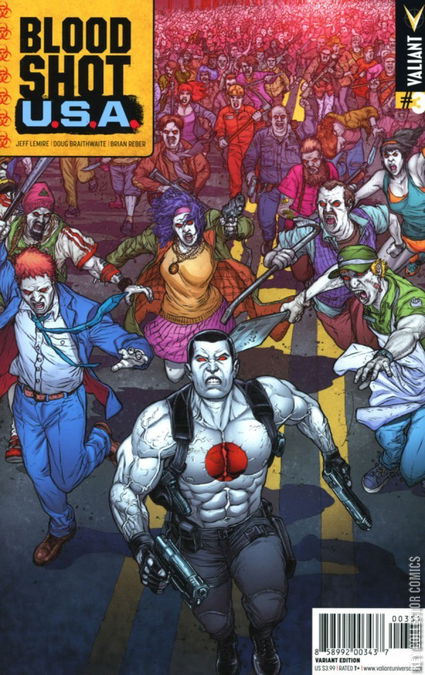 War for the home of the brave! New York City is in fl ames. From the Bronx to Broadway, panic has taken hold...and Project Rising Spirit's latest experiment - an airborne weapons test designed to turn eight million New Yorkers into nanite-infected killers - is already paying dividends. America's politicians have demanded action...and you can bet your bottom dollar they're going to get it when Bloodshot and Deathmate make a last stand to defuse NYC's very own armageddon! The explosive standalone comics event of the fall reaches a fever pitch as New York Times best-selling writer Jeff Lemire (BLOODSHOT REBORN, Moon Knight) and superstar artist Doug Braithwaite (ARMOR HUNTERS, Justice) unleash the next barrage in Bloodshot's borough-busting battle royale!