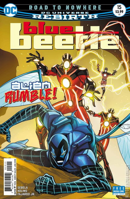 ROAD TO NOWHERE, PART 2 Blue Beetle finds himself away from home and up against the mysterious Short-Timers, time-traveling bandits who may have a more sinister purpose in mind than just robbery, one that could affect all of reality. As if Jaime doesn't have his hands full enough, he's got to try and do battle while keeping his super-hero identity secret from his new girlfriend, Naomi.