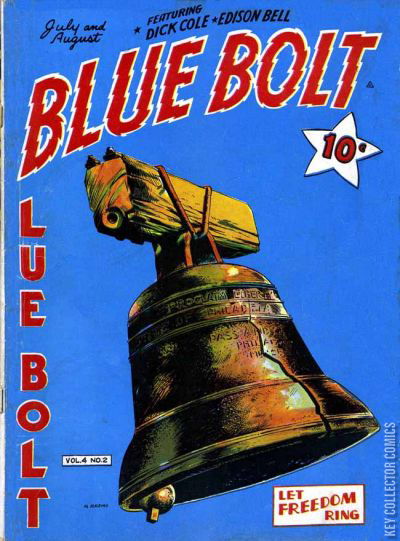Home / Novelty / Blue Bolt / Blue Bolt #2 Novelty Released August 1943 Blue Bolt #2 Add to Collection Want It Synopsis No synopsis available. Add to Collection Buy it on eBay Buy on eBay Low $30 Mid $90 High $305 Synopsis No synopsis available. Details Series Blue Bolt Cover Date August 1943 Pages 60 UPC N/A Cover Price $0.10 Final Orders Cutoff N/A Creators No creators listed. Price Guide Log in or subscribe to access detailed graded price information and market insights. Log In Subscribe