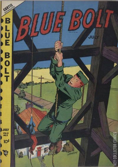 Home / Novelty / Blue Bolt / Blue Bolt #2 Novelty Released July 1948 Blue Bolt #2 Add to Collection Want It Synopsis No synopsis available. Add to Collection Buy it on eBay Buy on eBay Low $40 Mid $115 High $385 Synopsis No synopsis available. Details Series Blue Bolt Cover Date July 1948 Pages 52 UPC N/A Cover Price $0.10 Final Orders Cutoff N/A Creators No creators listed. Price Guide Log in or subscribe to access detailed graded price information and market insights. Log In Subscribe