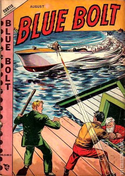 Home / Novelty / Blue Bolt / Blue Bolt #3 Novelty Released August 1948 Blue Bolt #3 Add to Collection Want It Synopsis No synopsis available. Add to Collection Buy it on eBay Buy on eBay Low $60 Mid $185 High $610 Synopsis No synopsis available. Details Series Blue Bolt Cover Date August 1948 Pages 52 UPC N/A Cover Price $0.10 Final Orders Cutoff N/A Creators No creators listed. Price Guide Log in or subscribe to access detailed graded price information and market insights. Log In Subscribe