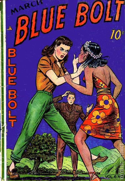 Home / Novelty / Blue Bolt / Blue Bolt #8 Novelty Released March 1946 Blue Bolt #8 Add to Collection Want It Synopsis No synopsis available. Issue 8 of 10 Add to Collection Buy it on eBay Buy on eBay Low $35 Mid $105 High $345 Synopsis No synopsis available. Details Series Blue Bolt Cover Date March 1946 Pages 52 UPC N/A Cover Price $0.10 Final Order Cutoff N/A Creators No creators listed. Price Guide Log in or subscribe to access detailed graded price information and market insights. Log In Subscribe