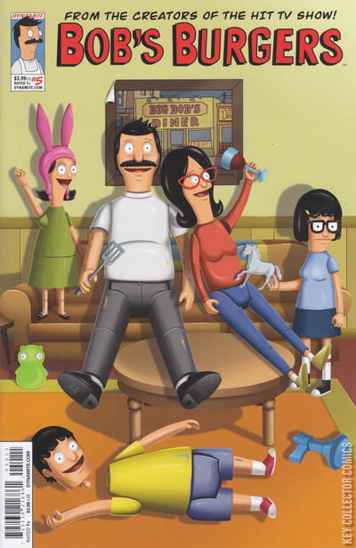 The final issue in the first-ever Bob's Burgers miniseries, featuring five original stories of the Belcher family! In a post-apocalyptic wasteland, Tina finds a familiar face; Bob cultivates a list of literary classics; Louise tries to shed light on a Boyz 4 Now mystery while denying having any interest in them whatsoever; Linda imagines an alternate universe; and Gene presents a musical set at Robot College.
