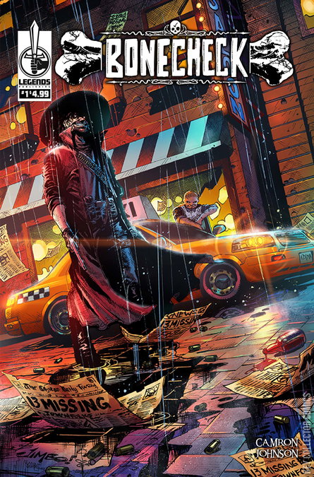 Legends Comics Publishing presents Bonecheck! Thirteen people have gone missing from the Trustworthy Motel. With an ancestral bar tab hanging over his head at the local saloon, a shadow-infested stranger, with an ever so sinister smile, accepts a bounty to investigate and eradicate. Armed with savage instruments of pain, luxurious cigars, and a flask full of damn near poisonous hard liquor, the cryptic bounty hunter will set out to collect his Bonecheck.