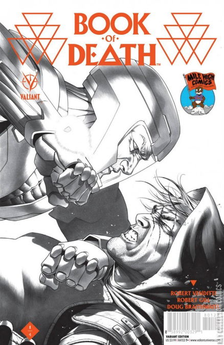 “A coward dies a thousand times before his death, but the valiant taste of death but once.” The Valiant heroes. X-O Manowar. Bloodshot. Ninjak. The Harbinger Renegades. Unity. This is how they lived. This is how they died. Now we know. The Book of the Geomancer has recorded it all. But only a young girl – the last in a line of the enigmatic mystics who protect the Earth known as Geomancers – has seen this future come to pass, from the coming cataclysm to the dawn of the 41st century. Alone with her sworn protector, the Eternal Warrior – a soldier battle-forged across five thousand years of combat – the duo must defy their allies to stop the Dark Age that now threatens to eclipse our world. Together, they are the number one target of every hero and villain on Earth. Either the Eternal Warrior hands her over…or they take him down. But can even he single-handedly protect one child when the entire Valiant Universe wages war against him? The blockbuster Valiant event of 2015 starts here as New York Times best-selling writer Robert Venditti (X-O MANOWAR) joins superstar-in-the-making Robert Gill (ARMOR HUNTERS: HARBINGER) and visionary artist Doug Braithwaite (ARMOR HUNTERS) to begin a thousand-year journey into the future of the Valiant Universe…and rain, fire, blood and war on the heroes of today.