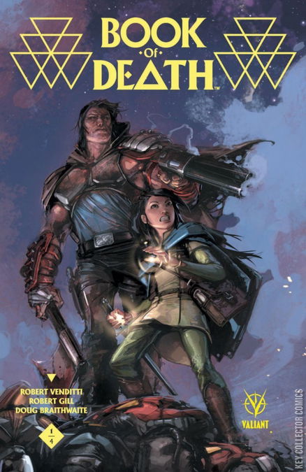 “A coward dies a thousand times before his death, but the valiant taste of death but once.” The Valiant heroes. X-O Manowar. Bloodshot. Ninjak. The Harbinger Renegades. Unity. This is how they lived. This is how they died. Now we know. The Book of the Geomancer has recorded it all. But only a young girl – the last in a line of the enigmatic mystics who protect the Earth known as Geomancers – has seen this future come to pass, from the coming cataclysm to the dawn of the 41st century. Alone with her sworn protector, the Eternal Warrior – a soldier battle-forged across five thousand years of combat – the duo must defy their allies to stop the Dark Age that now threatens to eclipse our world. Together, they are the number one target of every hero and villain on Earth. Either the Eternal Warrior hands her over…or they take him down. But can even he single-handedly protect one child when the entire Valiant Universe wages war against him? The blockbuster Valiant event of 2015 starts here as New York Times best-selling writer Robert Venditti (X-O MANOWAR) joins superstar-in-the-making Robert Gill (ARMOR HUNTERS: HARBINGER) and visionary artist Doug Braithwaite (ARMOR HUNTERS) to begin a thousand-year journey into the future of the Valiant Universe…and rain, fire, blood and war on the heroes of today.