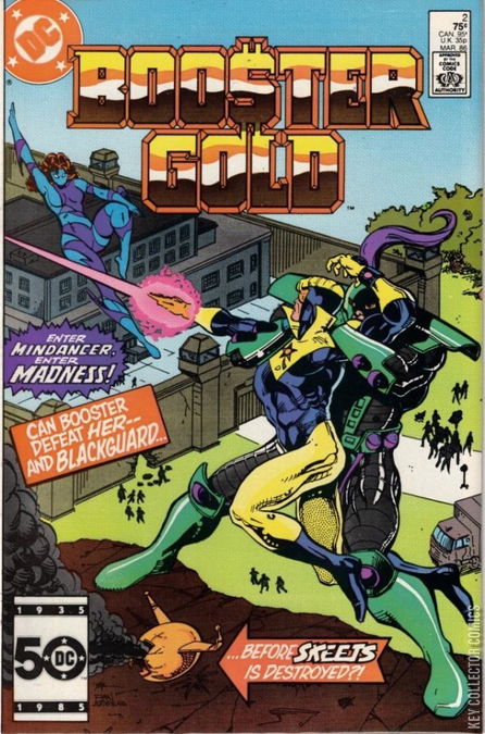 After last issue's defeat, Booster laments his loneliness and his separation from his family. Later, while filming a television commercial near a prison, Booster again meets and battles Blackguard and Mindancer.