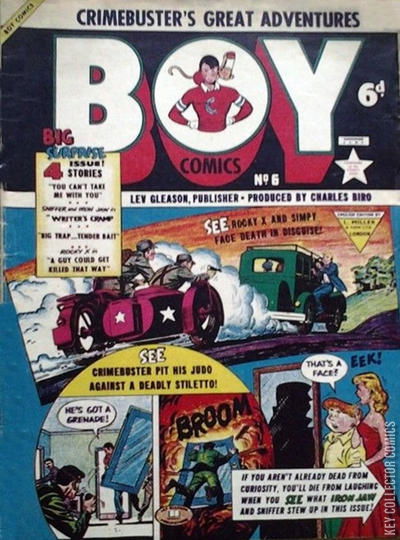 Home / L Miller Son / Boy Comics / Boy Comics #6 L Miller Son Released January 1955 Boy Comics #6 Add to Collection Want It Add to Collection Buy it on eBay Buy on eBay Low $25 Mid $75 High $250 Synopsis No synopsis available. Details Series Boy Comics Cover Date January 1955 Pages N/A UPC N/A Cover Price N/A Final Orders Cutoff N/A Creators No creators listed. Price Guide Log in or subscribe to access detailed graded price information and market insights. Log In Subscribe