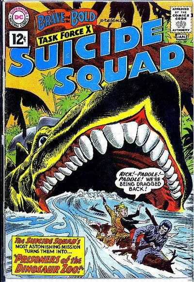 PRISONERS OF THE DINOSAUR ZOO! Investigating the remains of a robot and a dinosaur, the Suicide Squad enter a cave, are swallowed by another dinosaur, and find an entire prehistoric world within it. RAIN OF FIRE! The Suicide Squad is captured by an artist who turns them into golden statues and intends to sell them to a gang boss.