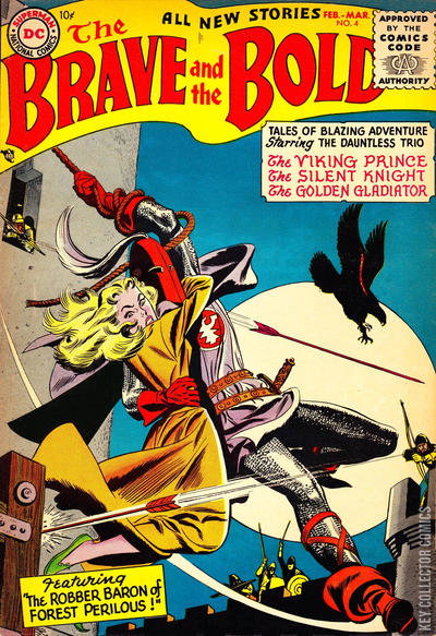 ROBBER BARON OF FOREST PERILOUS Brian stood in the courtyard watching, with his knight tutor, Grot, as Sir Edwin tried to tame his newest steed! After he is thrown off, Edwin grabs his crossbow and aims it at the beast, shouting that it's bewitched! Brian rushes over between the steed and the arrow, Edwin holds his fire as the lad climbs on the horse and hangs on tight. The animal bucks and twists and turns, but Brian holds on until, at last, the horse grows tired. Sir Edwin is very impressed, and remarks that Jon could finally be ready to sit beside him on the throne. Sir Grot interjects at that moment and suggests that he not judge Brian based on one 'accident' where the horse probably just fell asleep. As if to emphasize Grot's point, the horse suddenly jolts and Brian is knocked off. Celia rushes to Brian's aid as Grot and Sir Edwin share a laugh at his expense. Days later, soldiers return from the Forest Perilous to report that the jewels they were guarding for Sir Edwin had been stolen by the Robber Baron! The following day, Celia mounts her steed, prepared to travel to the dance being held at sir Ronald's castle. She bids Brian farewell, telling him she'd like to talk more about his eyes when she returns, and she'll try to remember where she's seen eyes like his before. As soon as she is gone, Brian overhears Edwin's laughter, he decides to eavesdrop, and learns that the stolen jewels were fakes designed to throw off any thieves, the real jewels will be transported with the unknowing lady Celia. This information gives Brian a bad feeling, as Celia had left with only a handmaiden and no bodyguards. He sneaks out of the castle with Slasher the hawk, and makes his way into the forest to don his Silent Knight guise. Once dressed, the Silent Knight comes across Celia's handmaiden, on her own and in distress. Lady Celia has been taken by the Robber Baron to his castle! It's just a matter of following Slasher, with his keen senses, to find the Baron's hidden keep. Luckily, there were vines growing on the castle wall that the Silent Knight could use to climb up and avoid any guards. Through one of the high windows he sees Celia, being held by the Baron, who gloats with the bag of jewels, repeatedly tossing it up in the air. The Silent Knight nabs the bag from his window perch during one of the tosses. The Baron's archers fire their arrows and the knight seemingly falls to his doom. In actuality, he had managed to hang on to one of the vines below, and once the Baron and his men leave the room, he again appears at the window sill to rescue Celia. She holds on tight, her arms around his neck, as he climbs back down, never speaking a word to her. He unsaddles one of the Baron's guards and together with Celia, rides the horse back home. Later in the day, Brian sits in the stables bathing one of Sir Edwin's horses with Lady Celia watching. She seems to think he reminds her of someone, though she knows not who. THE WHIRLING WARRIORS! During a yearly festival in the fishing village, Gunnda is named Queen of the celebration for being the most fair maiden that year. A contest between two men, the Viking Prince Jon, and Toke the red-bearded, begins for the privilege to dance with the fair Gunnda! The first challenge is to climb a sea-lashed cliff and retrieve the egg of the black fern, a rare bird. As Jon is nearing the nest where the egg lies, he is struck by a falling bit of rock and loses his grip, plummeting into the sea below! Before he submerges completely, Jon noticed Toke was standing on the ledge above where the rock had come from. In the water, he is attacked by a giant sea otter the villagers have named "Trukka". Jon manages to defeat Trukka, but Toke has already returned to the beach with the egg, winning the first challenge. In the second challenge, they must scale the snowy peaks and bring back a blue snow flower that grows atop. Gunnda gives Jon her cloak, to keep him warm and safe. She wishes for him to win the contest, for she doesn't want to dance with anyone else. On the peaks, Toke is further along though he stops long enough to send a rolling ball of snow down towards the Viking Prince, hindering his progress. By the time Jon is able to dig his way out, Toke has already picked a flower and now makes his way back down via the skis he wore. Jon finds a flower and, with Gunnda's cloak, forms a makeshift sail to help him beat Toke down the mountain! The score now tied, village chief Olaf gives the last challenge. Armed with their favored weapons, Jon and Toke are tied at the waist by a rope, wrapped around a pole until they are both swinging, and attempt to cut each other's rope to make them fall. Toke brandishes his war-axe and takes a swing directly at Jon! The Viking Prince manages to hold up his sword just in time, but the axe cuts it in half! As the villain swings around for another blow, Jon uses his free hand to pull himself up higher on his rope, both dodging Toke's murderous attack, and cutting the rope that held him! Jon is the winner of the contest! The musicians begin to play, as Jon and Gunnda happily dance together as the festival draws to a close. CAPTIVE CHAMPION! Caius was a ruthless collector of all things gold. From stolen gold sculptures, to a gold-colored steed whose rider met an unfortunate "accident". But his collection isn't complete as the devious Cinna tells him, the greatest warrior in Rome, the Golden Gladiator is not yet his. In the arena, Marcus fights against his latest challenger, as Cinna and Caius watch. He defeats his opponent and walks over to Lucia, Cinna's lovely daughter, and tosses his laurel wreath to her. Impressed, Caius agrees that his collection won't be complete until Marcus, the Golden Gladiator, is in his possession. A few days later, Marcus travels to the pine grove after receiving a note from Lucia to meet her there. It is actually a trap set by Caius, who throws a net around Marcus while his hired thugs beat him into unconsciousnes