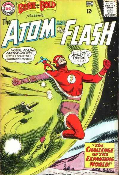 THE CHALLENGE OF THE EXPANDING WORLD A green globe containing a micro world crashes down to Earth into the observatory of Dr Stanton. A tyrant referring to himself as Atilla-5 hypnotizes Stanton into helping him expand their micro world to full size, where it becomes a threat to the Earth. Flash penetrates the planet but he is quickly subdued by Atillas forces. The Atom comes to the Flash's rescue with the assistance of two native members of the micro planet. Once free, Flash compresses the micro planet back to its original size, ending the threat to Earth.