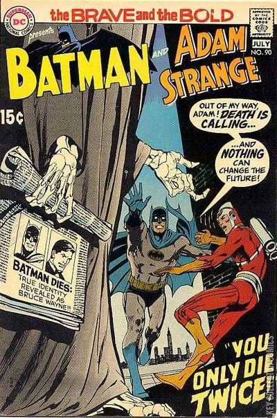 YOU ONLY DIE TWICE! After a near death experience, Batman is visited by Adam Strange, who explains to him that after a freak accident involving the Zeta-Beam, Adam was transported to Earth at sometime in the future and found Batman's obituary. However, as Adam grabbed for the newspaper, he was transported back to modern day Rann, only taking part of the obituary with him, so that the year of Batman's death is unknown. Giving this information to Batman leads the caped crusader to become paranoid of his coming demise, and leaves Earth with Adam Strange in the middle of solving a crime involving a contracting scheme and contractor Mike Morrison. However, when viewing Gotham City via a machine on Rann, Batman observes Alfred being taken hostage by the mob over gambling debts. Snapping out of his paranoid, Batman returns to Earth with Adam Strange and the duo travel to Liberty Island where they rescue Alfred and break up the crime syndicate. Batman finally resolves that he will no longer run from his fated demise, whatever and whenever that may be.