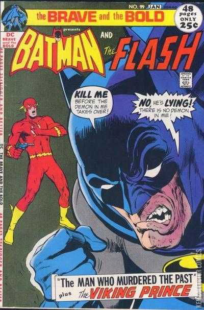 THE MAN WHO MURDERED THE PAST! Visiting the old Wayne summer home, Batman reflects on the happy times that he spent there with his parents. Coming across his parents ashes, Batman suddenly gets possessed by the ghost of Manuel, the islands old Port-A-Gee who died 50 years ago. Each night the same incident happens, where Batman is possessed by the ghost and causes trouble on the island. Calling the Flash for help, the two travel to the spirit world and learn that Manuel is plotting to bring all the spirits to new bodies in the realm of the living. Flash and Batman soon find the source of Manuel's possession ability: A black diamond carved into the shape of the Egyptian life goddess, which was hidden in the urn containing the Wayne's ashes. Smashing the urn open, and having the Flash throw the diamond into space, Batman thwarts Manuel's plot to possess the living with souls of the dead. THE SECRET OF ODIN'S CUP! This story is reprinted from The Brave and the Bold #20.