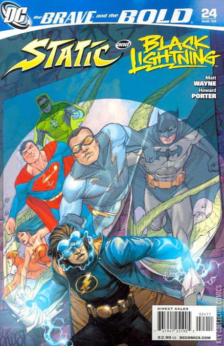 At long last, the first meeting of Static and Black Lightning! Virgil Hawkins has always had a bit of a problem with authority figures - especially politicos as seemingly crooked as one-time Luthor crony Jefferson Pierce. When Black Lightning comes to speak at Hemingway High's commencement, Static fully intends to give him a piece of his mind. But not if Holocaust takes a piece out of both of them first!