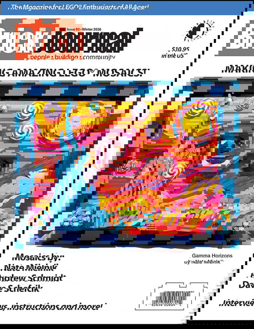 BrickJournal #92 (84 full-color pages), the magazine for LEGO® enthusiasts, has a fit of Mosaic Madness with builders Nate Mielnick and Dave Schefcik! We also explore cutting-edge Tactile Mosaics with Andrew Schmidt! Plus BrickNerd’s custom creations; Bantha Bricks: Fans of LEGO Star Wars spotlights the best builds from a galaxy far, far away; step-by-step “You Can Build It” instructions by Christopher Deck; and Minifigure Customization with Jared K. Burks! Edited by Joe Meno.