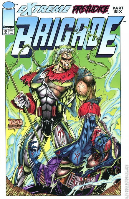 Extreme Prejudice pt. 6. Guest-starring Team Youngblood and Bloodstrike. Story by Rob Liefeld and Eric Stephenson. Art by Marat Mychaels and Marlo Alquiza. Continued from Team Youngblood #8. Quantum has defeated Team Youngblood, Brigade, Bloodstrike, and even the ultra powerful Supreme. Can anyone hope to stop this madman and prevent him from fulfilling his dark desires. Don't miss this penultimate chapter of Extreme Prejudice. Story concludes in Bloodstrike #10. Include coupon #6 of 7 for Extreme Prejudice #0.