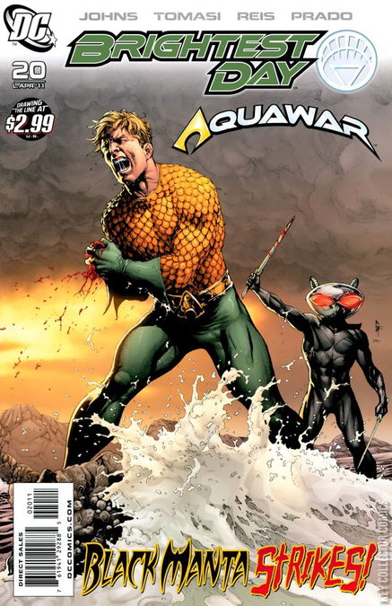 AQUAWAR, PART TWO The BRIGHTEST DAYS are numbered as this best-selling series heads toward its shocking conclusion, and fans won't want to miss a single page of the action! "Aquawar" breaks out with Aquaman, Mera, Aqualad and a surprise guest star facing off against the terrorist forces of Black Manta and Siren to keep the vast waters of the world from sinking the United States!