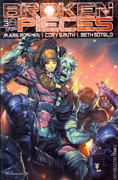 What is lost in life is found in death! Aspen Comic's newest original series, BROKEN PIECES, continues! The broken pieces of Dr. Richard Adam's present begin to come together, revealing the tragic reality of his impending future! Meanwhile, Adams begins to discover the disastrous and horrific conditions of the world and people outside the boundaries of Trinion's control, as his wife Gabriella must make a reluctant decision to continue working on her research for Ludas, and the nefarious corporation. Plus, the arrival of Trinion's Elite Soldier force complicates matters even more-as collateral damage and bloodshed follows their destructive mission objective! Written and created by Aspen's own Mark Roslan and featuring stunning artwork by newcomer Cory Smith and colorist Beth Sotelo, BROKEN PIECES will keep you on the edge of your seat from start to finish!