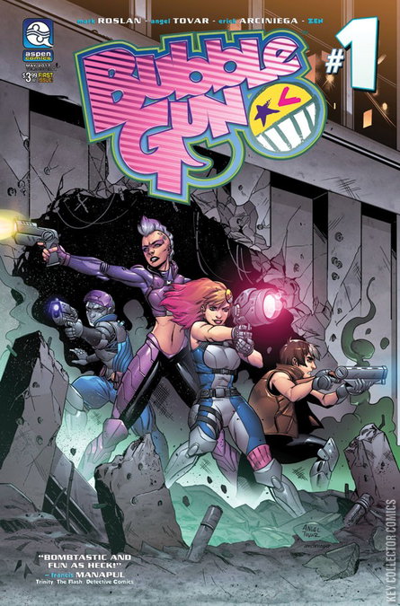 The BubbleGun crew return for more high stakes jobs! Since the team rescued the group's newest member, the cyber boy Asher, from the corporate megalomaniac, Drazic, their world has been in constant turmoil! Devyn and Molli find their bandit crew forced to do the bidding of an underworld gangster, Sir Penny, after borrowing and destroying his favorite ship, The Dark Lightning. Yet, even if they survive Sir Penny's harrowing missions--how will they escape the clutches of a ruthless gangster plotting to kidnap Asher?! Creator and writer Mark Roslan (Broken Pieces) is joined by penciler Angel Tovar () and colorist Erick Arciniega () on what's sure to become one of comics' biggest sci-fi, action adventure series of the summer! Strap yourselves in because BUBBLEGUN is gonna take you on a wild ride!