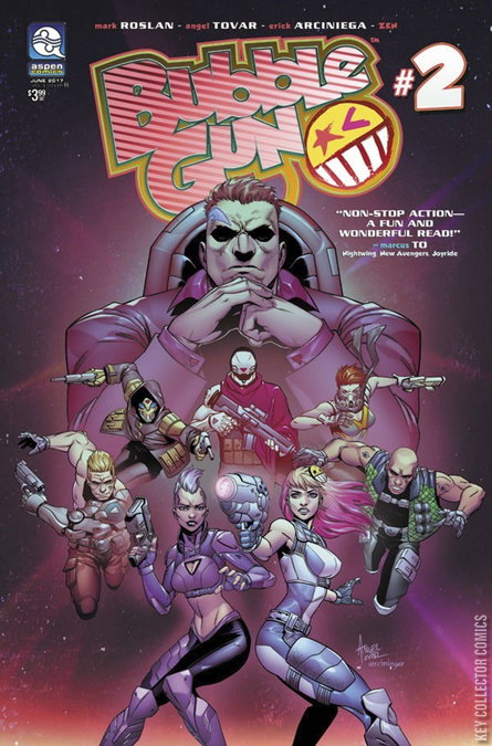 The BubbleGun crew return for more high stakes jobs! Treachery and deception are the order of the day, as the BubbleGun team learns the cold hard truth about the perils of working in the black market. Their 'employer' Sir Penny has put his 'Nectar' into production, and the market is booming. But, is the crew too far deep into Sir Penny's tangled web of lies to survive?! Creator and writer Mark Roslan (Broken Pieces) is joined by penciler Angel Tovar and colorist Erick Arciniega on what's sure to become one of comics' biggest sci-fi, action adventure series of the summer! Strap yourselves in because BUBBLEGUN is gonna take you on a wild ride!