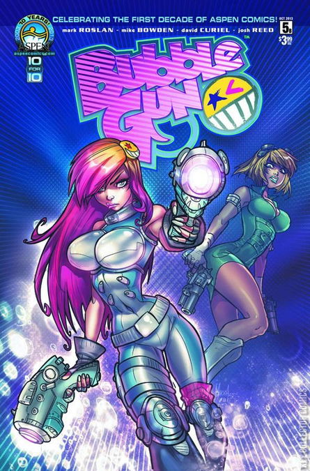They like the tech, but live for the high stakes! The BUBBLEGUN team is forced to make an uneasy alliance with their bitter rivals in order to penetrate the Vitafrone headquarters and attack Craine. With the cost of failure being the life of her captive sister, Devyn, along with Asher, the prized cyber-boy, Molli and the team have no room for error. Of course, Craine has his own plan in place-to ensure this is the team's final mission, once and for all! Creator and writer Mark Roslan, along with penciler Mike Bowden and colorist David Curiel invite you to take part in what's sure to become Aspen's next hit sci-fi, action adventure series, BUBBLEGUN!
