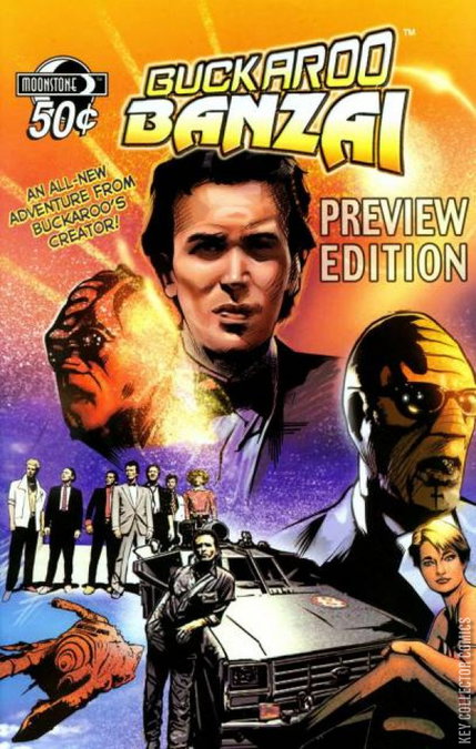 This preview showcases the 3-issue color mini-series that will be on the way next year, Buckaroo Banzai in Return of the Screw! Bad guys are a brewing to take over the whole planet, and its up to Buck and his crew to thwart the evil scheme... of course!