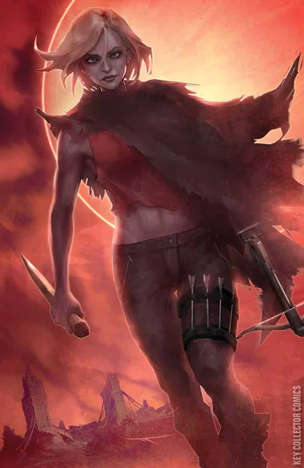 Can a lone Slayer save what's left of humanity? Buffy Summers is the last Slayer. Now in her 50s, she wages a one woman fight against the forces of darkness, who prey on humanity in the daylight unimpeded thanks to a magical catastrophe that has nearly blotted out the sun. The same disaster robbed Buffy of her friends and ended the Slayer-line, forcing her into an endless guerilla war. That is, until she stumbles across something she hasn't seen in a long time - hope, in the form of a prophecy and the young girl who carries it. The Multiverse explodes as writer Casey Gilly (Femme Magnifique, You Died) and artist Joe Jaro (Firefly) bring you a dystopian tale of Buffy Summers as you've never seen her before for fans of Wonder Woman: Dead Earth, Batman: Last Knight On Earth, and Future State: Wonder Woman.