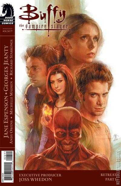 Team Buffy has become all about sneaky in a world where Slayers are now feared and hated, and vampires would rank at the top of a popularity poll. All hands are on deck as Scotland's brand-newest Slayer headquarters comes under attack; but, when things get more than a little fried, Buffy has to punt. There are yaks. Series artist Georges Jeanty, writer Jane Espenson, and executive producer Joss Whedon present Buffy on the defensive in 'Retreat.