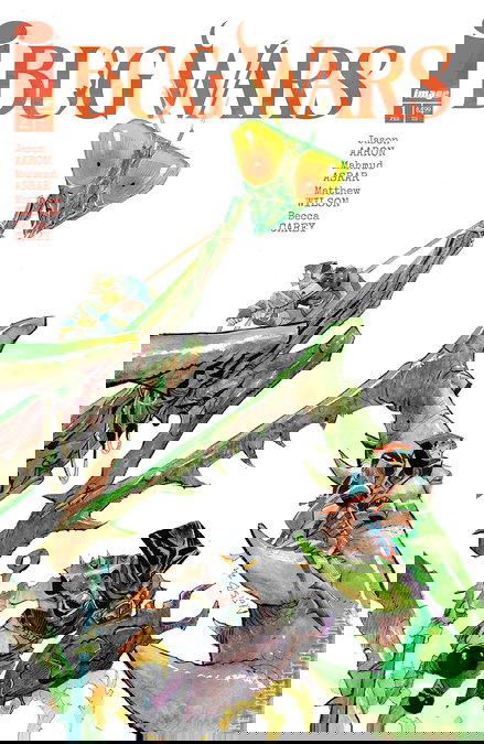 MINISERIES PREMIERE Slade Slaymaker is a kid from Alabama suddenly lost in a vicious world beyond his imagining, a world of marauding ant armies, spellcasting spider witches, and beetle-riding barbarians. A kingdom of tiny but deadly warriors hidden in his own backyard. The same world that saw his father eaten alive by insects now plunges young Slade into the middle of a brutal Bug War to decide the fate of his family. From the superstar team of writer JASON AARON (SOUTHERN BASTARDS, Teenage Mutant Ninja Turtles, Absolute Superman) and artist MAHMUD ASRAR (Conan the Barbarian, X-Men, Batman & Robin) comes the over-sized debut of BUG WARS: BOOK ONE, the first adventure in a sprawling new dark fantasy epic.