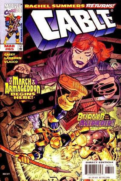 Cable goes up against one of Tinkerer's androids who is destroying buildings for the Maggia. Rachel Summers appearance.