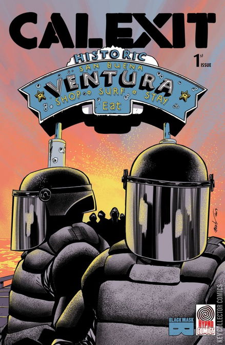 In “Calexit”, the citizens of California will struggle to seize power back from an autocratic government. The ongoing series tells the story of Jamil, a 25-year old courier (aka smuggler), and Zora, a 27-year old leader in the Pacific Coast Sister Cities Resistance, who escape together from a prison camp in Occupied Los Angeles, where martial law has been in place for the past year — ever since America’s demagogue President signed an executive order to deport all immigrants, and California responded by proclaiming itself a Sanctuary State. Each issue of “Calexit” will also include non-fiction material about local sustainability and grassroots campaigning for 2018 elections.