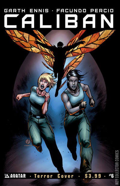 The penultimate issue of the best new horror sci-fi series of 2014 is here! GARTH ENNIS turns the silent and stale corridors of space into a walking nightmare for the few remaining crewmen of the Caliban mining starship. As creeping death rounds every corner, the truth of Karien's rampage begins to unfold. But it's too late for salvation as the horror of the unknown becomes a miserable companion to those that cling to life on the doomed freighter. No one is safe in dead space. Available with Regular, Wraparound, Terror, and Design Sketch Incentive covers by Facundo Percio and an ultra-limited Dark Matter edition of just 1500 copies.
