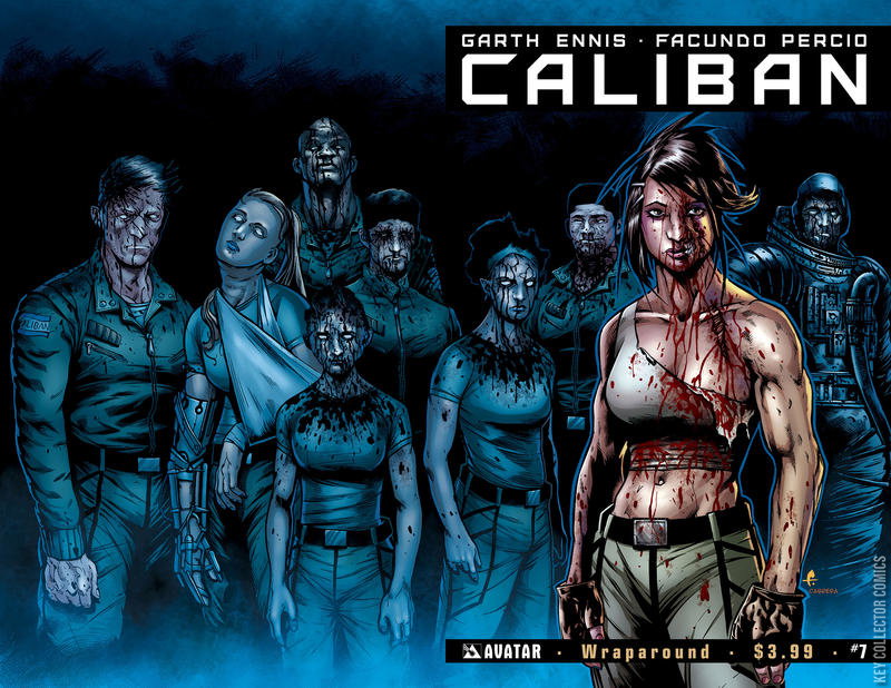 The final issue of the Caliban crew's frightening story delivers a devastating conclusion! Fans have called GARTH ENNIS and FACUNDO PERCIO's Caliban 'the best horror sci-fi since Alien' and the tale has lived up to the hype. Down every alien corridor a hybrid of human and extraterrestrial horror waits to slaughter the unsuspecting. Human kind is all too trusting of the dangers hidden in the limitless depths of space. Now their mistake will usher in a new era of fear and misery unlike anything they've ever known. No one is safe in dead space. Available with Regular, Wraparound, Terror, and Design Sketch Incentive covers by Facundo Percio and an ultra-limited Dark Matter edition of just 1000 copies.