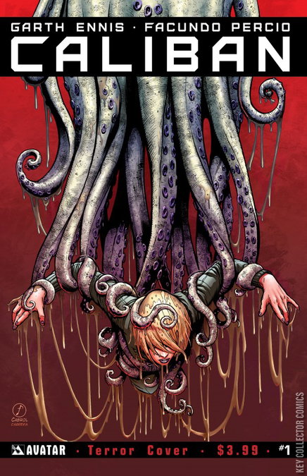 Master storyteller GARTH ENNIS and Fashion Beast artist FACUNDO PERCIO team up to deliver a haunting new epic of science fiction horror. The crew of the Caliban travels hyperspace on nothing more than a routine trip for the giant vessel. Just human beings that have been inside a bit too long, confident of no other life in the Galaxy, and all the vastness of space to remind them how far they are from home. But when an impossible accident suddenly causes the Caliban to slam into an abandoned alien ship, a nightmare in space begins to unfold. Ennis delivers his unique brand of flawed characters, spot-on dialog, and trademark flare for the unexpected in a new series in the vein of Alien. This is the beginning of the end for the crew of the Caliban. Available with Regular, Wraparound, Terror, and Design Sketch Incentive covers by Facundo Percio and a ultra-limited Dark Matter edition of just 1500 copies.