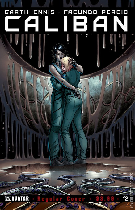 Horror in space has never been more terrifying than when told by master storyteller GARTH ENNIS and Fashion Beast artist FACUNDO PERCIO! No one imagined it possible, there is no other life in the universe outside of humanity. But an accident in hyperspace has forced the crew of the Caliban into accepting that simple is not true. Amid the carnage of the mishap, an alien horror begins to unfold that will take these unsuspecting space travelers to the very edge of sanity. There are things in this universe that were not meant to be encountered. Ennis delivers a new frightening vision of terror in the pages of Caliban! Available with Regular, Wraparound, Terror, and Design Sketch Incentive covers by Facundo Percio and a ultra-limited Dark Matter edition of just 1500 copies.