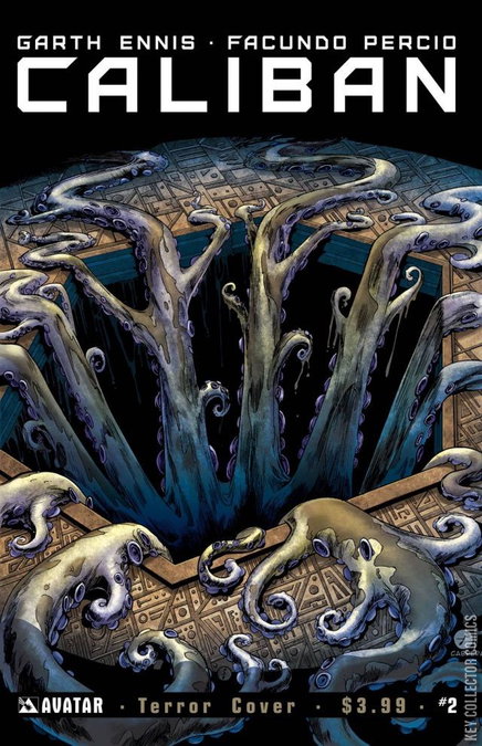 Horror in space has never been more terrifying than when told by master storyteller GARTH ENNIS and Fashion Beast artist FACUNDO PERCIO! No one imagined it possible, there is no other life in the universe outside of humanity. But an accident in hyperspace has forced the crew of the Caliban into accepting that simple is not true. Amid the carnage of the mishap, an alien horror begins to unfold that will take these unsuspecting space travelers to the very edge of sanity. There are things in this universe that were not meant to be encountered. Ennis delivers a new frightening vision of terror in the pages of Caliban! Available with Regular, Wraparound, Terror, and Design Sketch Incentive covers by Facundo Percio and a ultra-limited Dark Matter edition of just 1500 copies.