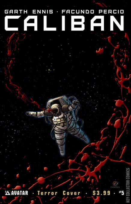 GARTH ENNIS, the creator of Preacher and Crossed, has delivered a space horror like no other in Caliban. Most of the crew were voided into space when the ships merged. But those left behind are experiencing a creeping dread as the quantity of survivors keeps falling at the hand of Karien. Desperation is the currency of the hour as the final few attempt to understand and escape the misery unfolding on the doomed mining ship. No one is safe in dead space. Available with Regular, Wraparound, Terror, and Design Sketch Incentive covers by Facundo Percio and an ultra-limited Dark Matter edition of just 1500 copies.